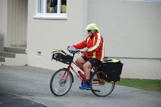 usually on a bicycle but more recently may be on a motor scooter. A moggy is your cat.